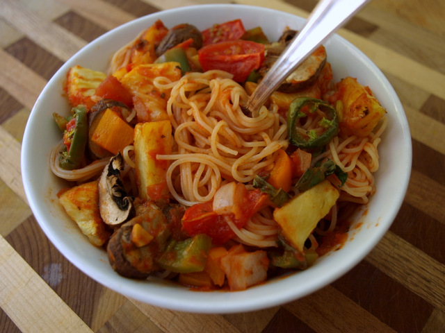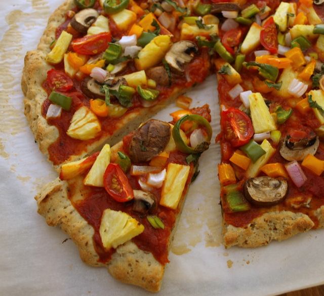 I can finally check this off my 'to do' cooking list. After making this pizza I had a wonderful idea....'Pizza Pasta'...a little quirky but very tasty. If you can load all these gems on a pizza, why not on pasta! Pineapple adds a whole new level to this dish, I found myself searching for those sweet pineapple pieces, along with the mushrooms too....pretty good.