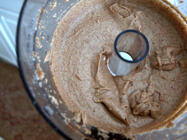 This is about 15 minutes in. Finally the almonds are starting to warm up and release the oils..it's coming together now. Add any additional ingredients at this time. At this point my neighbors were probably wondering what the heck I was doing. :)